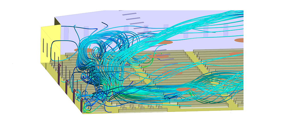Warehouses are large buildings that can accommodate huge amount of equipment & people, hence it is important to maintain adequate ventilation to maintain productivity. This case study analyses & optimizes the performance of the auditorium ventilation system to improve the thermal comfort level of its occupants. The simulations were carried out at worst case conditions for both summer & monsoon conditions.