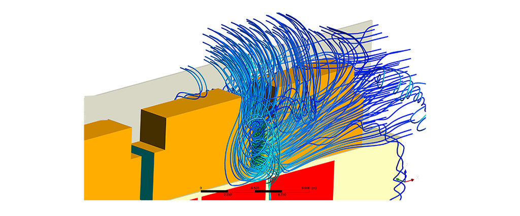 DG sets & Chillers require fresh air for their normal operation and the inlet fresh air temperature must not exceed 45°C. In this case DG sets & Chillers are placed near the smoke exhaust outlet grills. The CFD Analysis must study & prevent the hot air from the exhaust outlet grills from entering the air inlets of the DG sets & Chillers.
