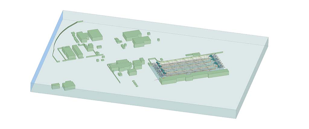 the customs area. Adjacent buildings in the upstream of the wind were carefully modelled to improve flow accuracy inside