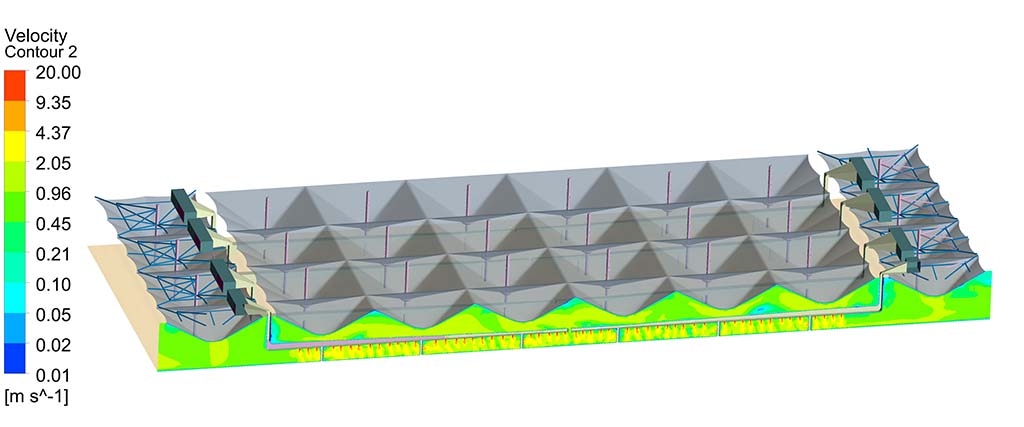 Weather data was used to simulate ambient worst case conditions (wind speed, direction, temperature & humidity) around